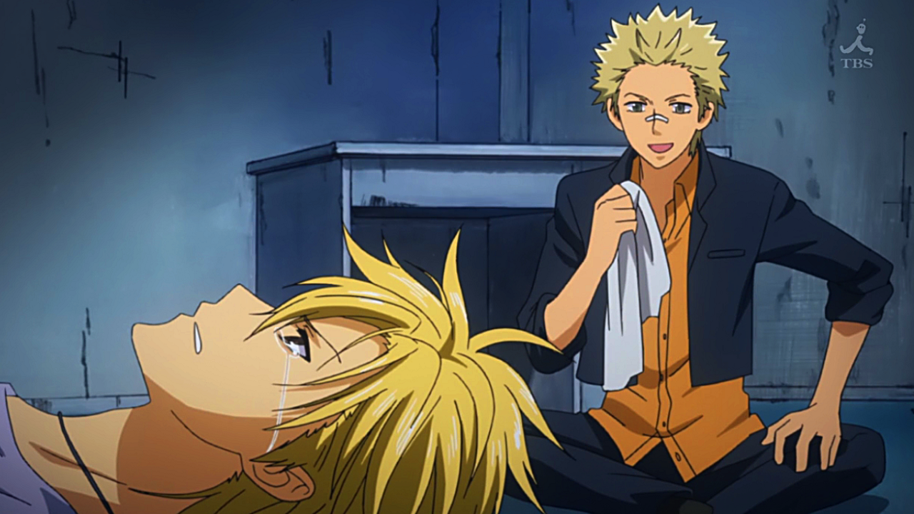 Naoya is later scolded for not telling Misaki about the abandoned building Gouki uses as a secret hideout, though he claims that it was because it was a secret. Misaki considers calling the police, though Naoya and Ryuunosuke tell her that if they accept the fight, all will be fine, causing them to run off.[49] The group then decides to act as gangsters in a movie, with Naoya taking on the role of a man abusing a female Aoi before being stopped by Takumi. As they continue, Naoya laughs at the fun, with Ikuto noticing that it's been a while since he did so.[50]